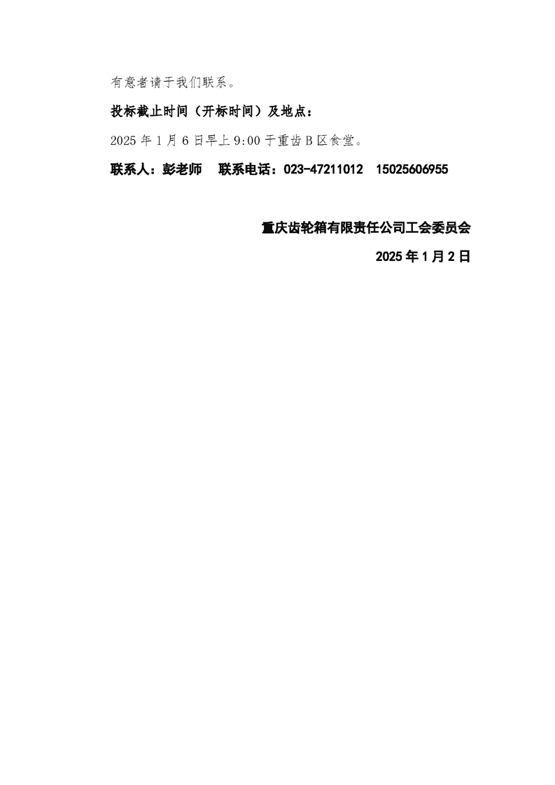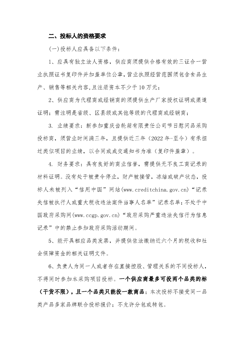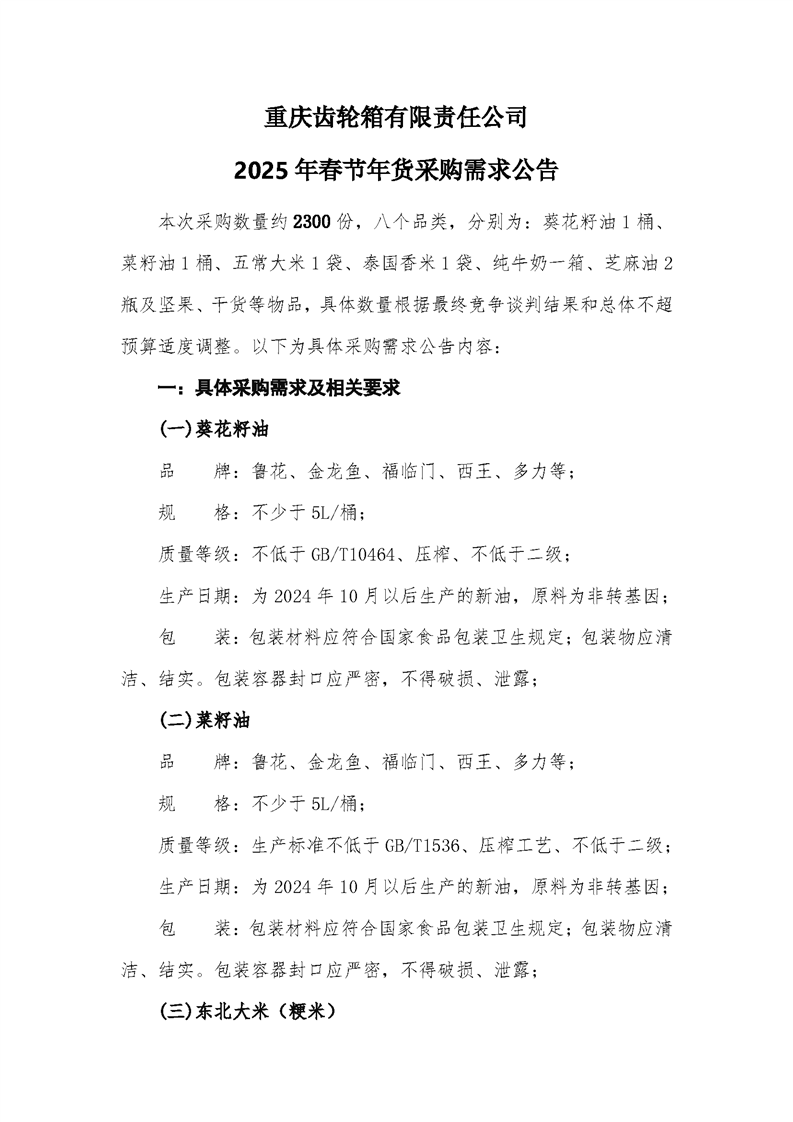 重慶齒輪箱有限責任公司2025年春節年貨采購需求公告